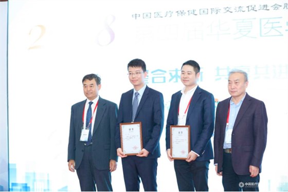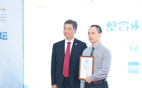 京東中美醫院院長伍冀湘為視頻大賽獲得冠軍的青年醫師頒獎