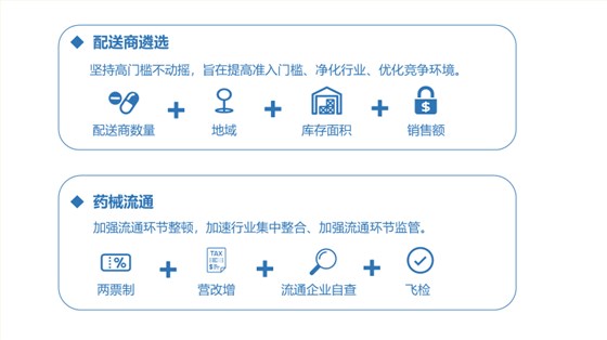 這雖是目前已知少有的關于耗材兩票制+配送商遴選效應的數據,但毋庸置疑,國家政策的趨勢就是提高準入門檻、加速行業整合,改變醫械流通“小、散、亂”的局面。業內人士認為,短期內藥械流通領域將形成“全國龍頭+區域龍頭+偏遠散戶”的競爭格局。未來,隨著政策的進一步發酵,一些散戶或自然人會逐步被全國龍頭或區域龍頭所整合,最終形成“全國龍頭+區域龍頭”的競爭格局。